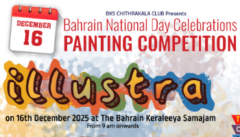 ബഹ്റൈന്റെ 54-ാമത് ദേശീയ ദിനാഘോഷത്തിനോടനുബന്ധിച്ചു ബഹ്റൈൻ കേരളീയ സമാജം 'ഇലസ്ട്ര 2025' എന്ന പേരിൽ മെഗാ ചിത്രകലാ മത്സരം സംഘടിപ്പിക്കുന്നു. 2025 ഡിസംബർ 16-ന് സമാജം ഡയമണ്ട് ജൂബിലി ഹാളിൽ വെച്ചാണ് മത്സരം നടക്കുക .
